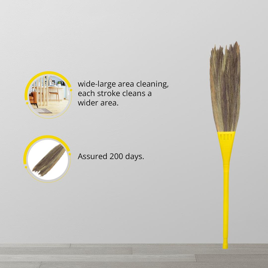 Unique palm (5 fingers spread) design – fast and ease of sweeping assured, reduces sweeping time and effort. Special polymer handle can reach long corners. Makes rooms neat and tidy.