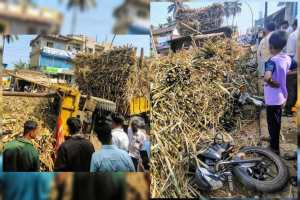 ಮುಂಡಗೋಡ(ಉತ್ತರಕನ್ನಡ): ಪಟ್ಟಣದ ಜನನಿಬಿಡ ಪ್ರದೇಶವಾದ ಯಲ್ಲಾಪುರ ರಸ್ತೆಯಲ್ಲಿ ಭಾರೀ ಅನಾಹುತವೊಂದು ಕೂದಲೆಳೆ ಅಂತರದಲ್ಲಿ ತಪ್ಪಿದೆ. ಅತಿಯಾದ ಕಬ್ಬು ತುಂಬಿದ್ದ ಟ್ರ್ಯಾಕ್ಟರ್ ಟ್ರೈಲರ್ನ ಕೊಂಡಿ ಕಳಚಿ ನಡುರಸ್ತೆಯಲ್ಲೇ ಪಲ್ಟಿಯಾದ ಘಟನೆ ಪೋಸ್ಟ್ ಆಫೀಸ್ ಹಾಗೂ ಮಸೀದಿ...